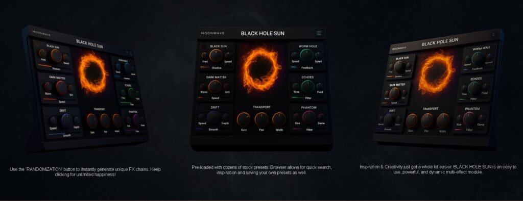 Black Hole Sun really brings a whole other dimension to sounds that I run through it, my only wish is that they make these plugs in AAX format, so I can then also use them in PRO TOOLS, instead of having to take tracks back and forth to put the effect on a track that I want it on